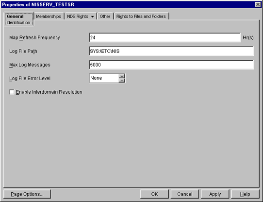 To Configure The Parameters Required For Nis Services, Right-click The Nisserv_servername > Click Properties. A Panel Similar To The Following Appears: