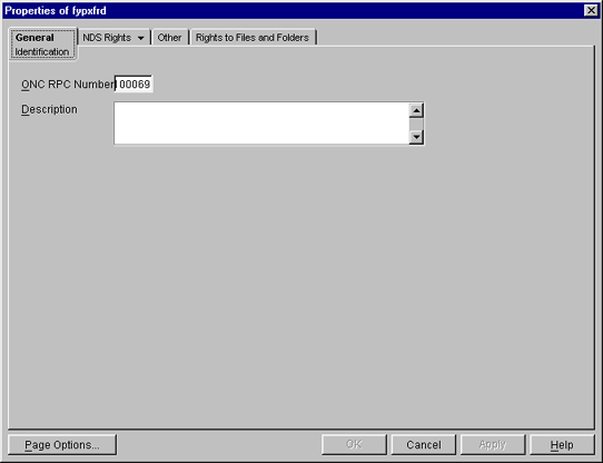 The following panel appears, displaying the various tabs that should be specified to add and modify the user information in eDirectory.