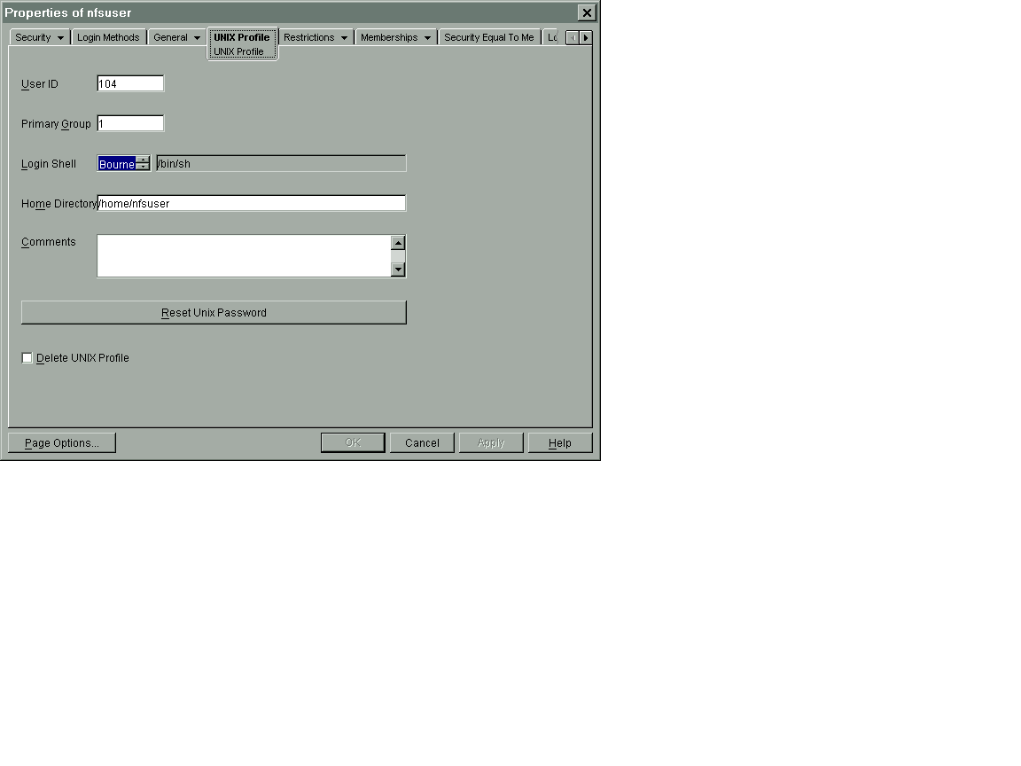 Choose the eDirectory User/Group object > right-click Properties > UNIX Profile. Enter the required fields in this page and move to the Other tab.