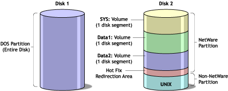 NOTE: A NetWare disk partition is not related to an NDS® partition.
