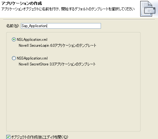 アプリケーションオブジェクトが作成されたら、Novell SecureLoginの資格情報プロビジョニングポリシーの環境設定に進んでください。