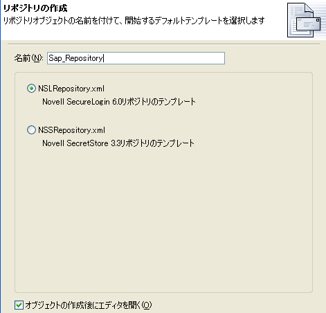 リポジトリオブジェクトが作成されたら、Novell SecureLoginのアプリケーションオブジェクトの作成に進んでください。