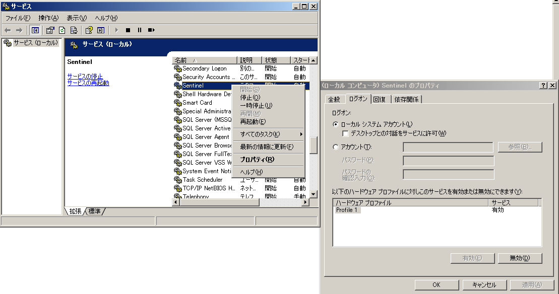 [Sentinel Properties (Sentinelのプロパティ)]ウィンドウで、[]タブを選択します。
