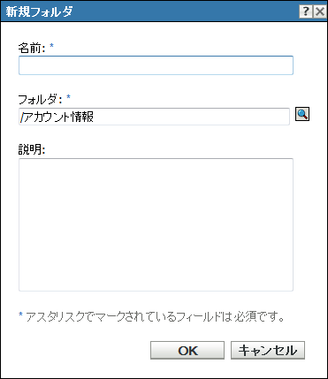 [アカウント情報ボールト]パネルで、[]>[]の順にクリックし、[新規フォルダ]ダイアログボックスを表示します。