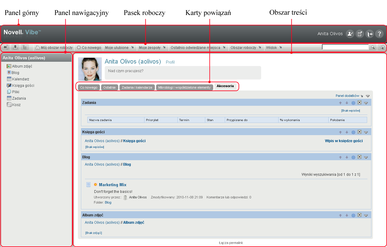 4.0 Poznawanie interfejsu i funkcji systemu Novell Vibe