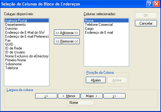 Você e os usuários com os quais compartilha um bloco de endereços podem organizar de forma diferente as colunas do bloco de endereços.