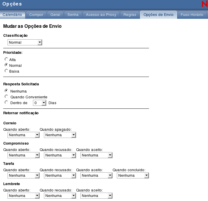 Para mudar a prioridade de todos os itens enviados, clique em no canto direito da Janela Principal e clique na guia .