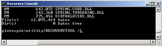 若要使用該備援工具,請在「備援主控台」視窗中輸入其指令名稱 RECOVERYTOOL,之後是適當的參數。